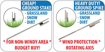 1. Limited to soft ground conditions like grass, dirt, sand beach or snow 2. May not be stable in windy conditions 3. Can be difficult to push into hard ground or rocky soil |