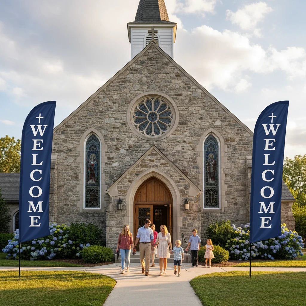 Single-sided flags have the design printed on one side, and it shows through to the other side in reverse (like looking in a mirror). Double-sided flags have two separate prints with a blockout liner in between, so the design reads correctly on both sides. We recommend double-sided for most professional applications.