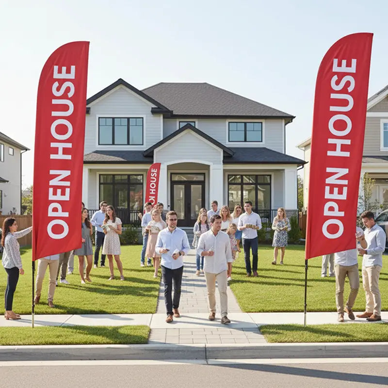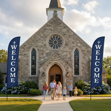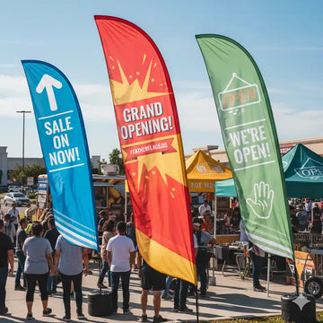 Feather flags are the perfect way to catch attention and promote your business. Our custom feather flag banners are made of high-quality polyester fabric materials and can be customized to feature your company's logo or slogan. They're also a great way to show off your brand at trade shows and other events.