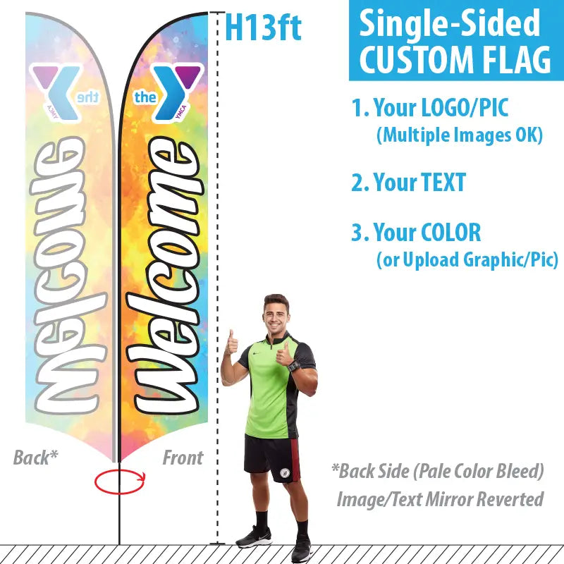 The most common feather flags are typically H8ft Pole and H10ft Pole, but you can purchase other larger feather flag sizes with H13ft, H15ft or even H18ft Pole Height.