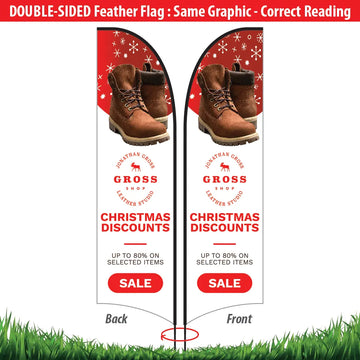 Maximize your brand's exposure with our Premium Double Sided Feather Flags. Crafted with high-quality materials and state-of-the-art printing technology, these flags are designed to catch the eye from any direction. Perfect for events, storefronts, and promotions where every angle counts.